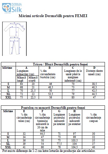 DermaSilk acționează în contact direct cu pielea, de aceea este important ca articolele să aibă mărimea corectă.