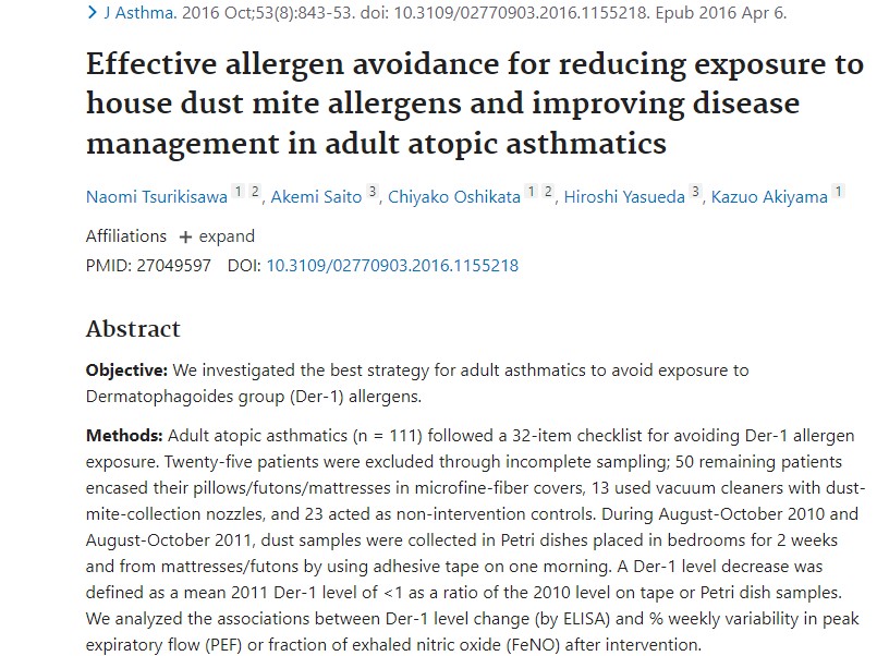 Effective allergen avoidance for reducing exposure to house dust mite allergens and improving disease management in adult atopic asthmatics, 2016