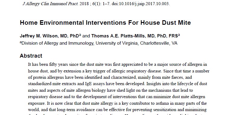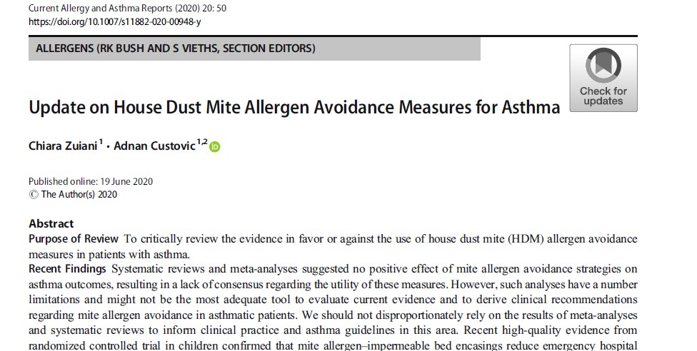 Update on House Dust Mite Allergen Avoidance Measures for Asthma, 2020