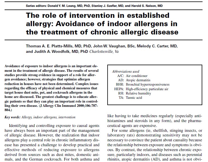 The role of intervention in established allergy: Avoidance of indoor allergens in the treatment of chronic allergic disease, 2000