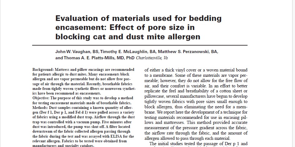 Evaluation of materials used for bedding encasement: Effect of pore size in blocking cat and dust mite allergen, 1999