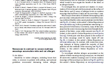 Nonwoven in contrast to woven mattress encasings accumulate mite and cat allergen, 2007