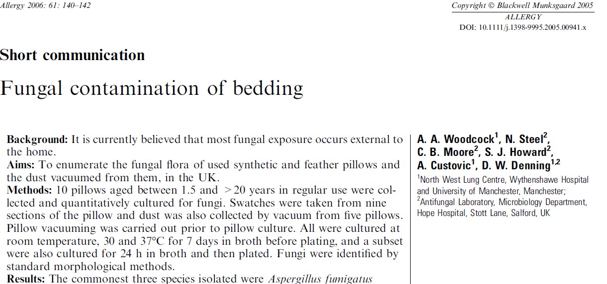 Fungal contamination of bedding, 2005