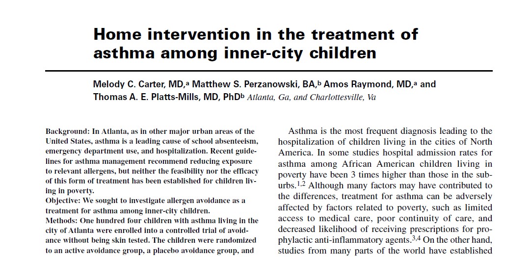 Home intervention in the treatment of asthma among inner-city children, 2001