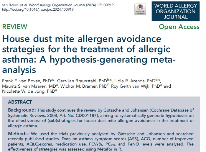 House dust mite allergen avoidance strategies for the treatment of allergic asthma: A hypothesis-generating metaanalysis, van Boven et al., World Allergy Organization Journal 2024