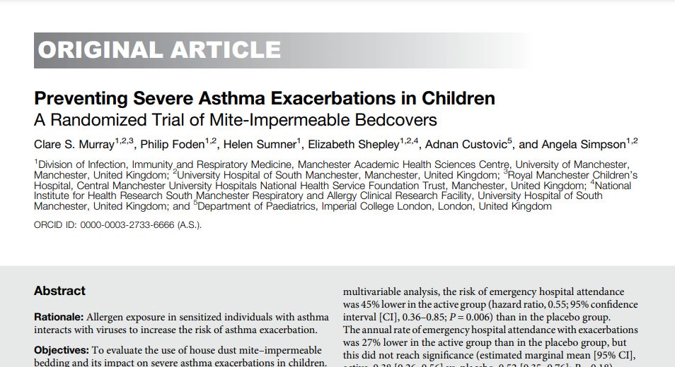 Preventing Severe Asthma Exacerbations in Children A Randomized Trial of Mite-Impermeable Bedcovers, 2017